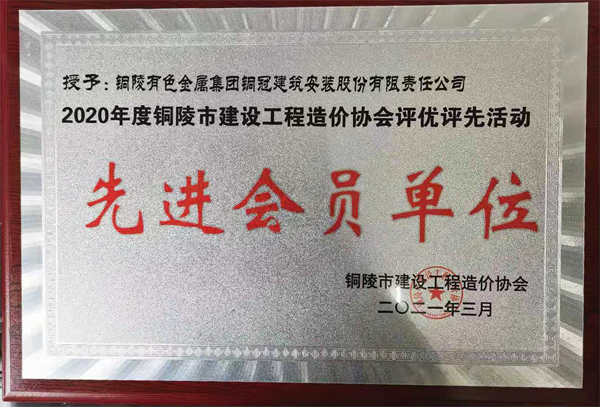 銅陵市造價(jià)協(xié)會(huì)先進(jìn)會(huì)員單位