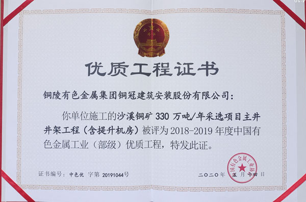 沙溪銅礦采選項(xiàng)目主井井架工程(部優(yōu))